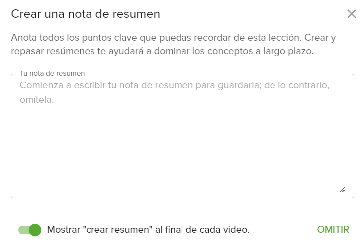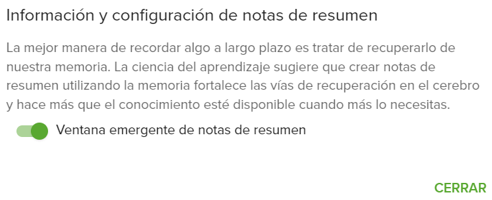 Haz clic en el interruptor verde para desactivar las notas. Ahora las notas de resumen ya no aparecerán al final de una lección: