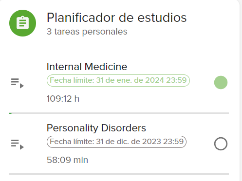 - Ahora podrás ver el curso en tu Planificador de Estudios. Podrás ver tanto tu progreso como el plazo: