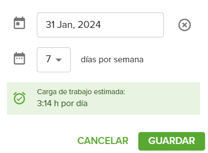 - En el ejemplo arriba: Tienes que invertir 7 min al día hasta el 31 de diciembre para completar aquella tarea hasta aquel día.